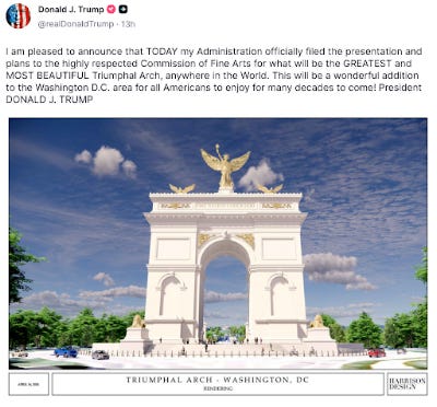 It denoted triumphant America. Look at this arch! Bigger than the one in France. America is great and I am the president!!