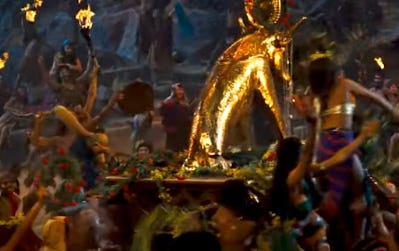 “They worshiped the golden calf.” Scene from Cecil B. DeMille “The Ten Commandments.”