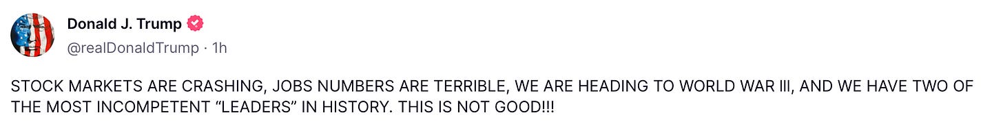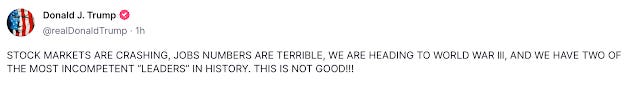 Trump goes far beyond "weird" into manic lunacy. Trump is sick. He doesn't drink, but he acts like a man with a drinking problem, a belligerent drunk. Trump types out ALL CAP ravings, sometimes of catastrophe, sometimes of anger that fellow Republicans are disloyal, most often of wild claims of his own brilliance. and anger at the perfidy of others. These are just in from last night: