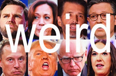 But "weird" is also a nearly entirely inoffensive term that encapsulates a whole range of oddity and worse. And there is no doubt that since 2015 when Bozo floated down an elevator and into electoral politics, our entire national discussion has become strange, abnormal, weird. I applaud Walz and the Democratic party for landing on a stand-in term that captures all that. The former president is weird. He's many other things too, but weird is a great catch all and we all know just what it means, in this context.